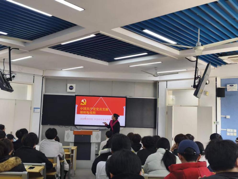 为帮助党校学员深入理解党员发展工作的规范要求,强化党性修养与纪律意识,明确向党组织靠拢的正确路径,2026年3月25日,国际教育学院第二期党校第一课在思齐楼22B7教室开讲。本次课程由学生社区党支部书记王燕静老师主讲,主题为《中国共产党党员发展细则和流程》,全体党校学员参与学习。